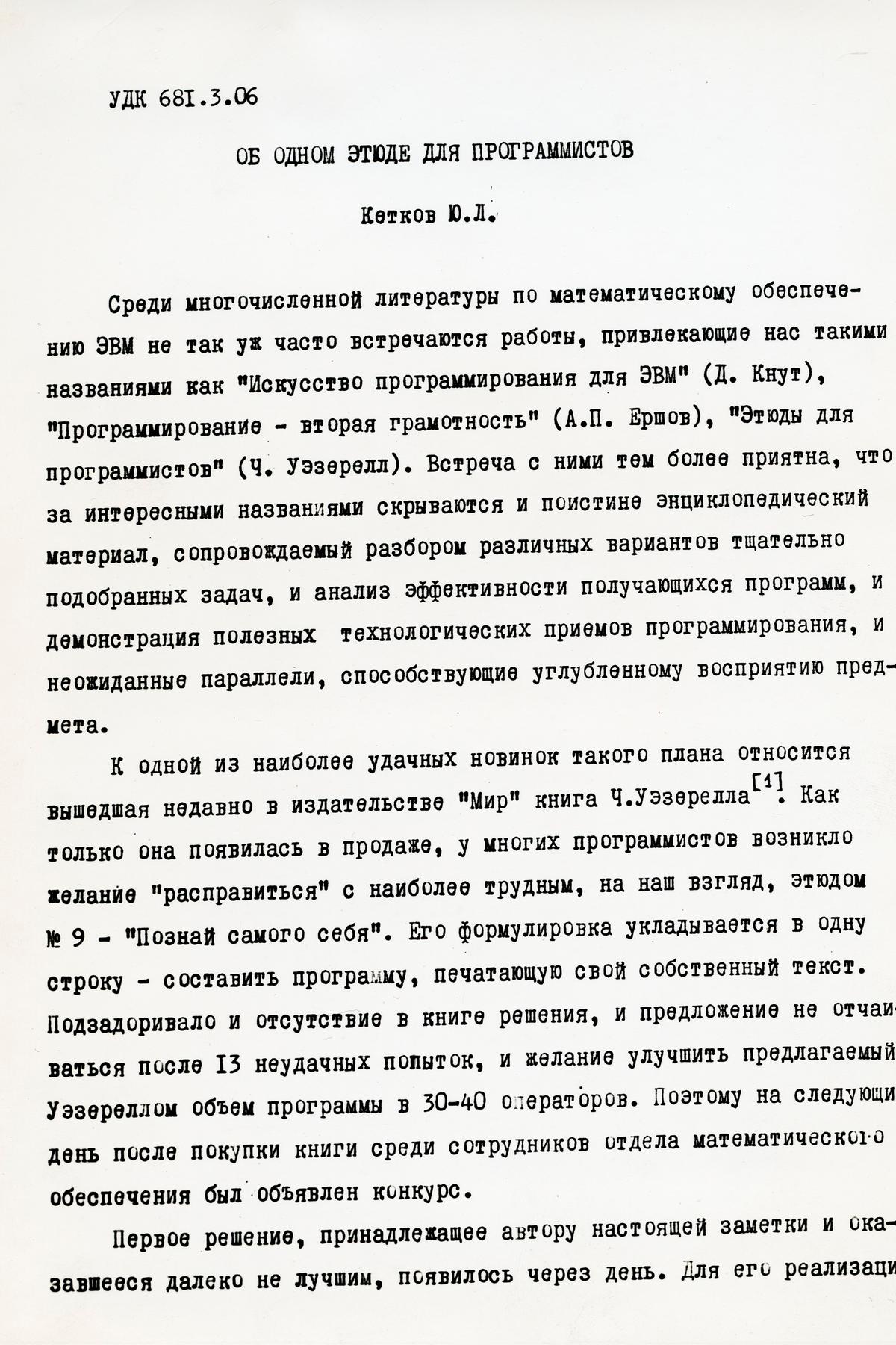 Ю.Л.Кетков - пионер в Нижегородском программировании