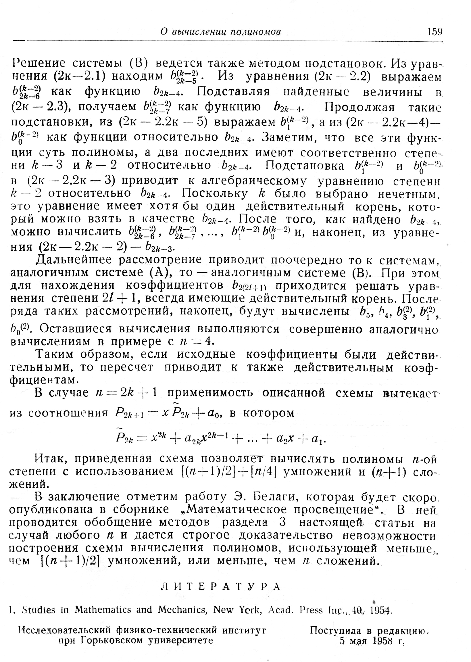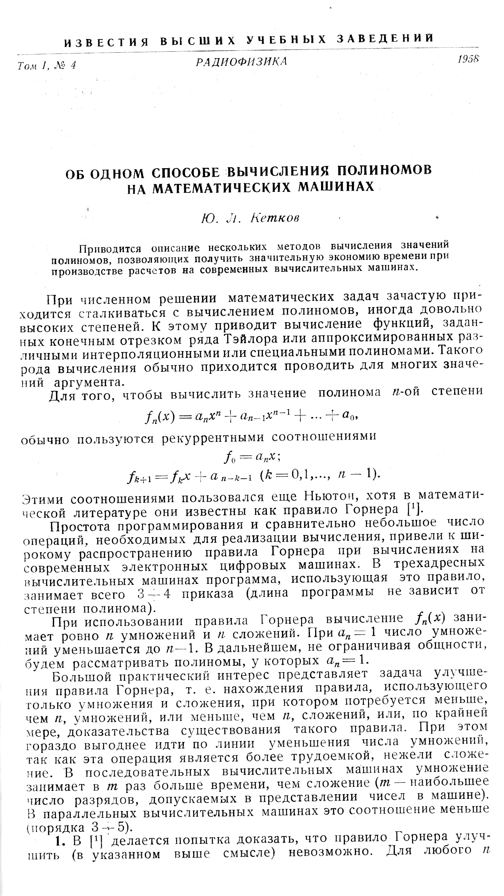 Об одном способе вычисления полиномов на математических машинах