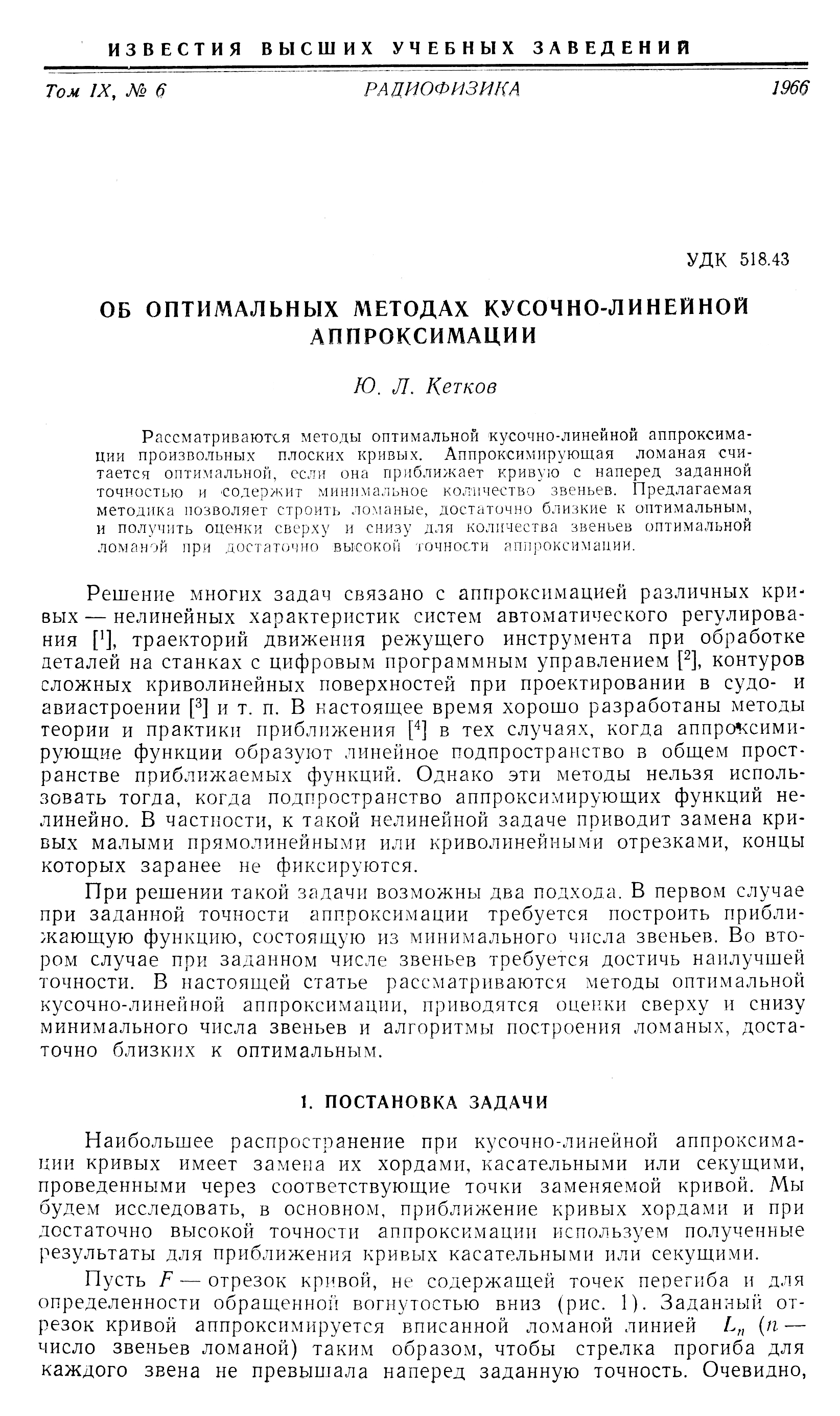 Об оптимальных методах кусочно-линейной аппроксимации