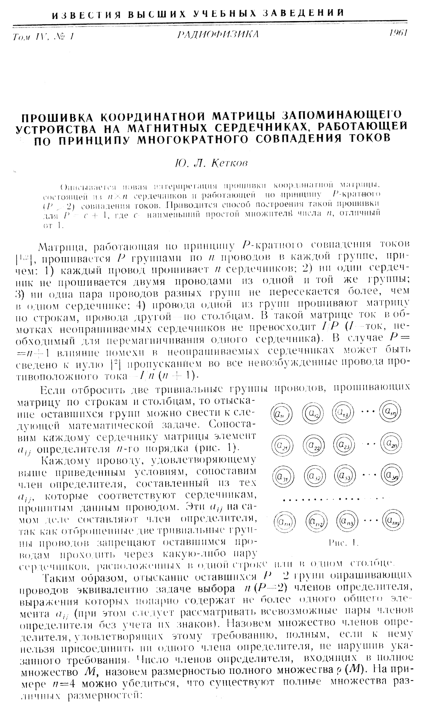 Прошивка координатной матрицы запоминающего устройства на магнитных сердечниках