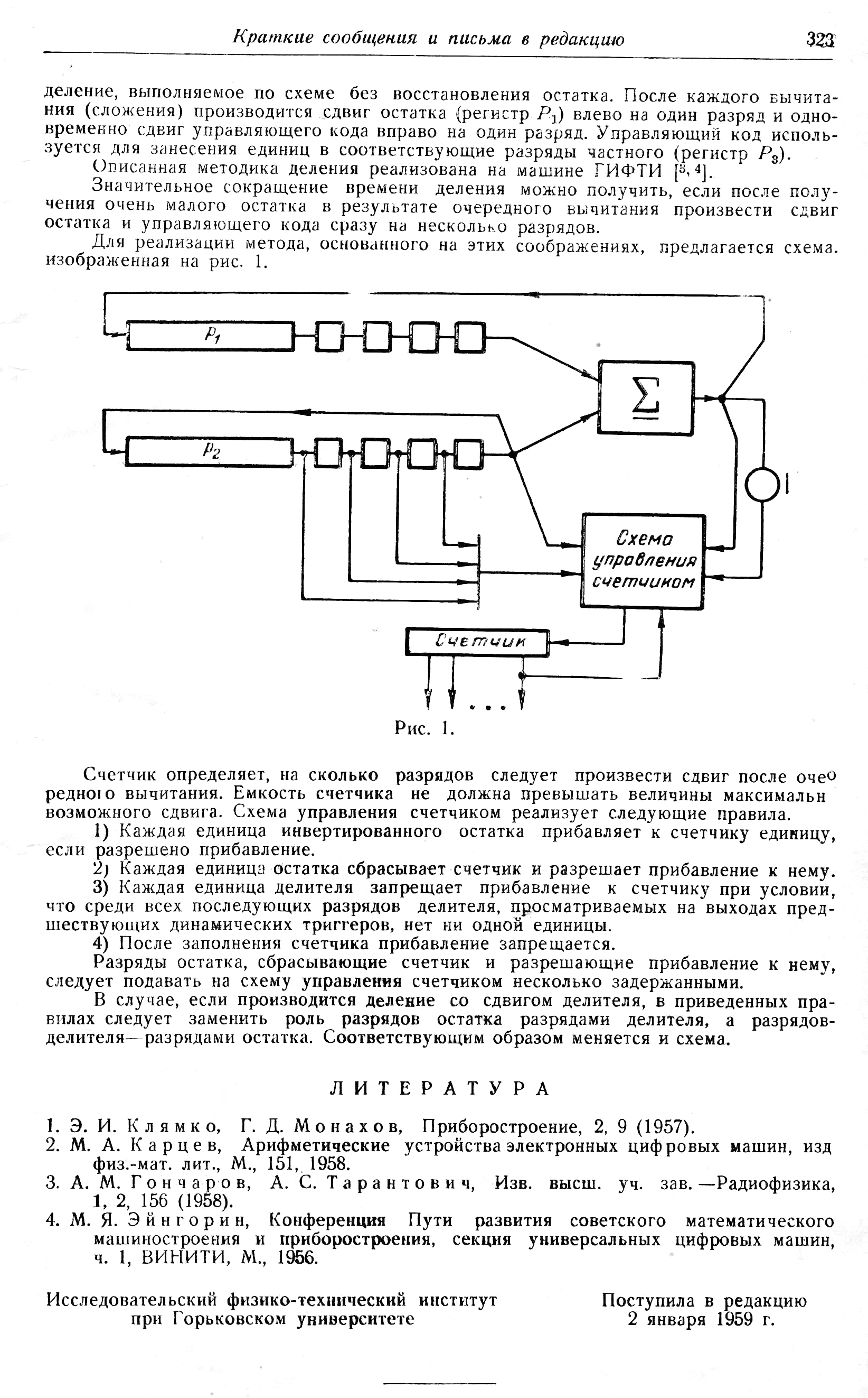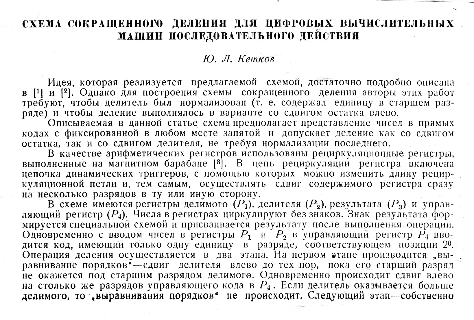 Схема сокращённого деления для цифровых вычислительных машин последовательного действия